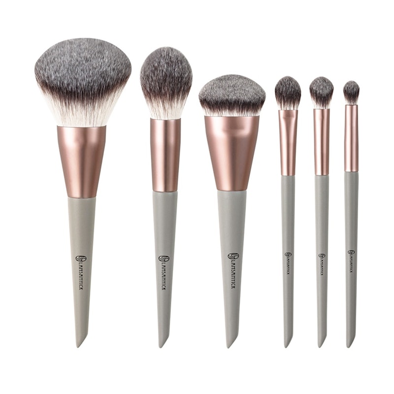 本套組針對基本的上妝需求所設計,從底妝到眼影均能應對。每支刷毛皆由蓬鬆細軟的頂級日本捲曲化纖毛製成,